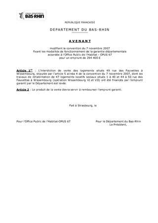 Le présent rapport propose d’autoriser l’Office Public de l’Habitat - OPUS 67 à vendre deux maisons situées à Seltz et à Wissembourg et de décider du maintien des garanties d’emprunt correspondantes.