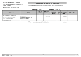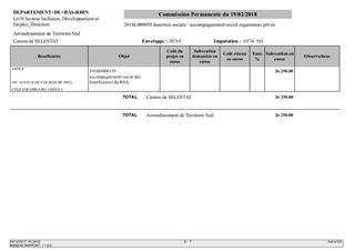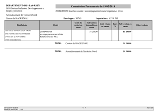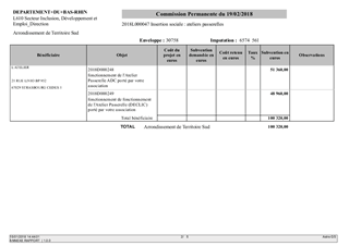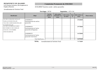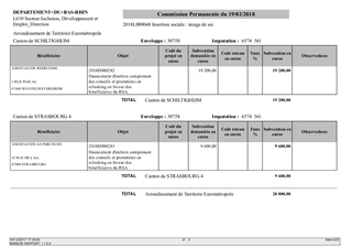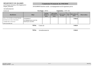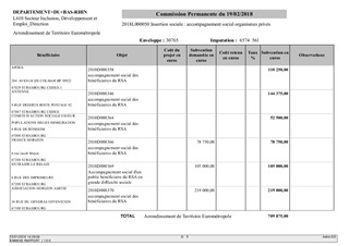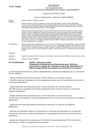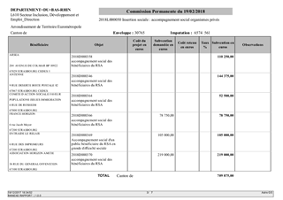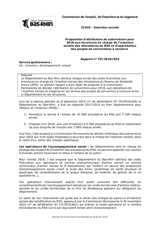 Le Département du Bas Rhin attribue chaque année des aides financières aux structures en charge de l’insertion sociale des allocataires du Revenu de Solidarité Active (RSA). Le présent rapport a pour objet de proposer à la Commission Permanente de décider l’attribution de subventions pour 2018, aux opérateurs de l'insertion sociale et d'approuver les termes des projets de convention à conclure entre le Département et ces structures.