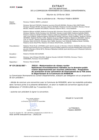 Opérations d’investissement réalisées sur le domaine public routier départemental par d’autres collectivités - Proposition de conclusion d’une convention de financement de la TVA entre le Département et la Commune de ROSHEIM