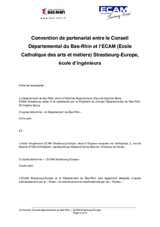 Il est proposé à la Commission Permanente de décider d'attribuer une subvention et d’approuver les termes du projet de convention de partenariat à conclure entre le Département du Bas-Rhin et l’Ecole Catholique d’Arts & Métiers (ECAM) Strasbourg-Europe et d’autoriser son président à signer ladite convention.