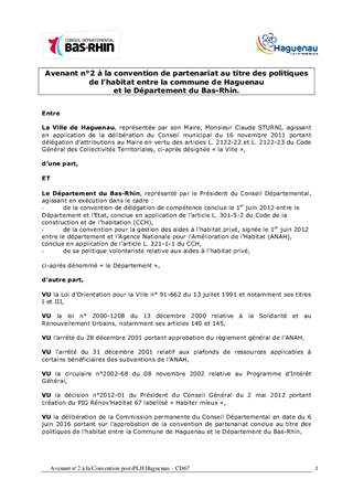 PDH - Proposition de prolongation de la convention de partenariat au titre des politiques de l'habitat conclue entre la Commune de HAGUENAU et le Département du Bas-Rhin