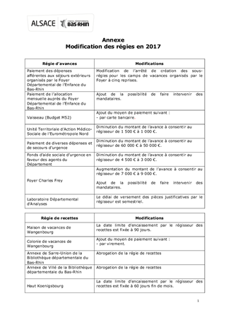 Le présent rapport a pour objet d’informer le Conseil Départemental sur les modifications apportées aux régies d’avances, aux régies de recettes et à la régie d’avances et de recettes au cours de l’année 2017.