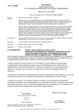 Le présent rapport a pour objet de proposer à la Commission Permanente de désigner le Département comme maître d’ouvrage unique pour le réaménagement d’une route départementale en agglomération, chargé à ce titre d’exercer les attributions relevant de la maîtrise d’ouvrage pour la chaussée départementale concernée, et à autoriser le président du Conseil Départemental à signer les conventions à intervenir entre la Communauté d’Agglomération de Haguenau et le Département. Cette convention a pour objet la désignation du maître d’ouvrage unique pour cette opération.