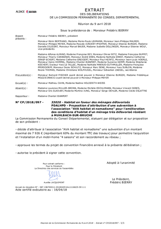 PDALHPD - Proposition d'attribution d'une subvention à l'association "AVA habitat et nomadisme" pour l'amélioration des conditions d'habitat d'un ménage très défavorisé résidant à MUHLBACH-SUR-BRUCHE