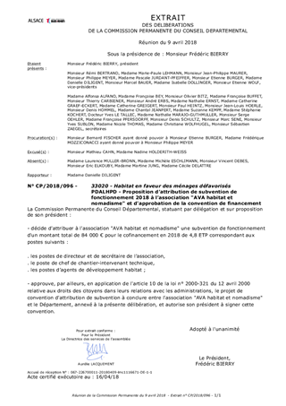 Il est proposé à la Commission Permanente de décider d’attribuer une subvention permettant de cofinancer le fonctionnement de l'association "AVA habitat et nomadisme" pendant l’année 2018, en lien avec les partenaires du plan départemental d'action pour le logement et l'hébergement des personnes défavorisées (PDALHPD). Cette subvention est destinée notamment à l'accompagnement des actions définies dans le PDALHPD en direction des ménages résidant sur des sites d'habitat précaire.
