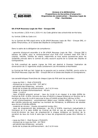 Propositions de Garanties d’emprunts - Organismes de construction - Nouveau Logis de l’Est - HOCHFELDEN
