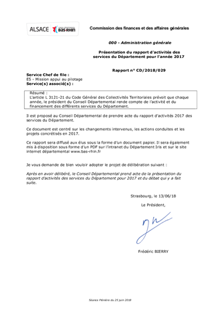 Présentation du rapport d’activités des services du Département pour l’année 2017