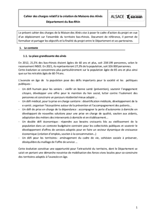 Le présent rapport a pour objet de proposer à la Commission Permanente de décider de la création et du déploiement de Maisons des Ainés sur le territoire bas-rhinois. Ces maisons, co-construites avec les acteurs locaux, visent à proposer un lieu unique et identifié d’accueil, d’accompagnement, d’animation et de ressources pour le public, les acteurs locaux et les élus.