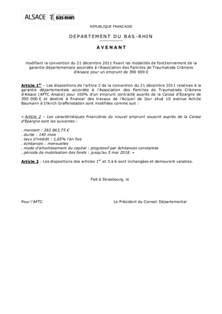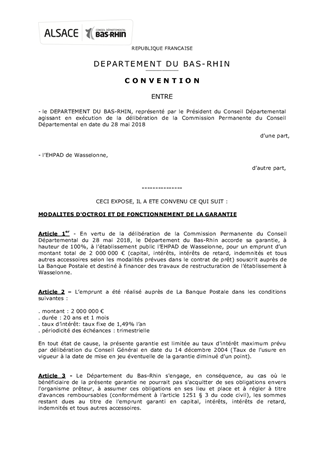 Le présent rapport a pour objet de proposer à la Commission Permanente de décider : - d’accorder une garantie d’emprunt sollicitée par l’EHPAD de Wasselonne, - d’accorder une garantie d’emprunt sollicitée par l’association Bartischgut, - du maintien d’une garantie suite à la renégociation d’un emprunt présenté par l’Association des Familles de Traumatisés Crâniens d’Alsace, - d’une radiation des inscriptions hypothécaires sollicitée par l’association Avant-Garde du Rhin.