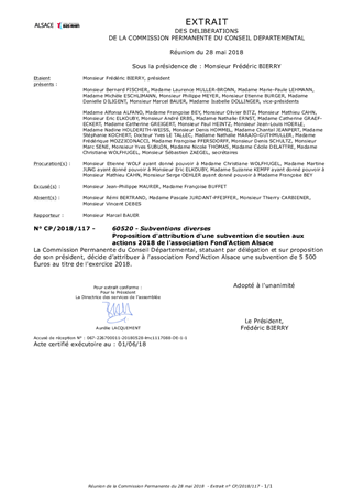 Le présent rapport a pour objet de proposer à la Commission Permanente de décider d'attribuer une subvention à l'association Fond'Action Alsace au titre de l'exercice 2018.