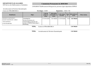 Le présent rapport a pour objet de proposer à la Commission Permanente de décider d'attribuer une subvention d'investissement à l'établissement hébergeant des personnes âgées dépendantes (EHPAD) Bartischgut à STRASBOURG, pour des travaux d'extension, de restructuration et de mise aux normes. Chef de file de la politique en faveur des personnes âgées, le Département subventionne les opérations de création ou de rénovation lourde en vue d'adapter les établissements hébergeant des personnes âgées à la prise en charge de la dépendance. Le taux de subvention est de 30% de prix plafonds. Depuis 2014, ceux-ci sont fixés à 70 000 € par lit pour les travaux et à 3 600 € par lit pour le mobilier.