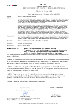 Le Département du Bas-Rhin poursuit son engagement en faveur des collèges, au travers de la mise à disposition d’un outil de gestion et de pilotage de la restauration scolaire à destination des équipes de restauration et des gestionnaires. Le rapport a pour objet de proposer à la Commission Permanente de décider de l'adhésion du Département à un groupement de commandes pour l’acquisition et le déploiement de cet outil aux côtés des Départements du Haut-Rhin, de la Moselle et de la Région, qui coordonnera le groupement. Cette proposition permettra d’assurer la gestion des commandes et des stocks de la restauration dans les collèges et d’améliorer la traçabilité des produits, en remplacement d’un outil (PRESTO) hérité au moment du transfert de compétence de l'Etat et désormais obsolète. L’enjeu est double : assurer la sécurité financière et de gestion des services de restauration et veiller à la sécurité alimentaire.