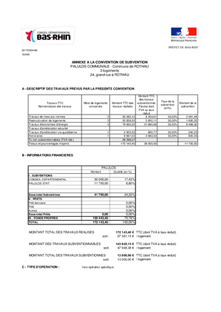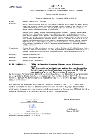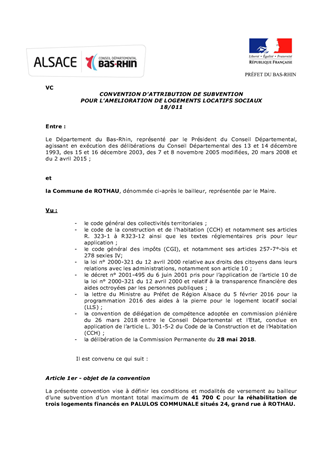 PDH - Proposition d’attribution de subvention pour la création de trois logements locatifs sociaux communaux à ROTHAU et approbation d'un projet de convention à conclure