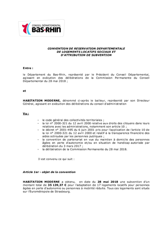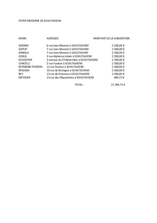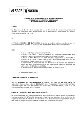 Convention logements adaptation FOYER MODERNE DE SCHILTIGHEIM -