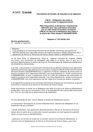 PDH-Proposition d’attribution d’agréments définitifs pour des opérations financées par un prêt social de location-accession (PSLA) au titre de la délégation des aides à la pierre de l’Etat situées à GEUDERTHEIM