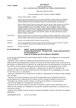 Contrat Départemental - Territoire Sud - Fonds d’Attractivité et de Développement Projet de la Maison du Pain d’Alsace à SELESTAT