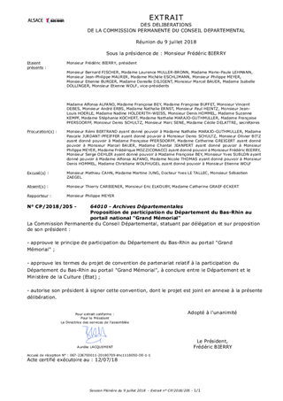 Proposition de participation du Département du Bas-Rhin au portail national "Grand Mémorial"
