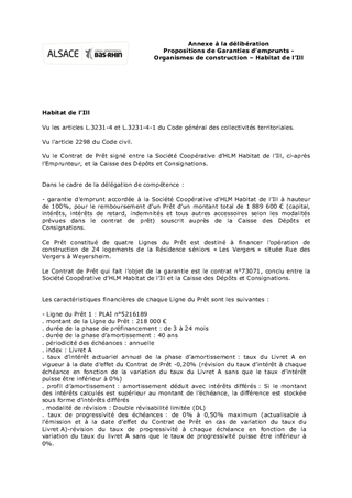 Propositions de Garanties d’emprunts - Organismes de construction - Habitat de l’Ill