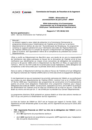 PDH-Information à la Commission Permanente sur le Programme d’actions 2018 pour l'amélioration de l’habitat privé