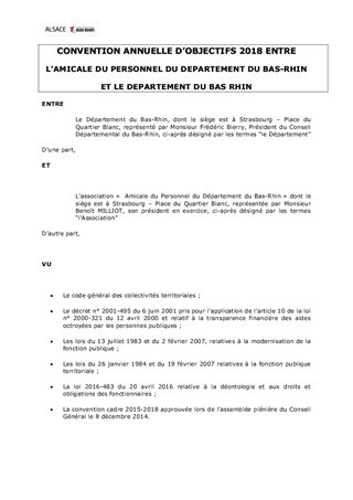 Proposition d'attribution à l'Amicale du Personnel du Bas-Rhin de la part fixe de la subvention 2018, de la part variable de la subvention 2017 et proposition d'approbation de la convention d'objectifs 2018 à conclure entre le Département du Bas-Rhin et l'Amicale du Personnel du Département du Bas-Rhin