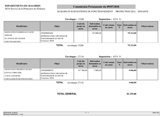 Le présent rapport propose à la Commission Permanente de décider d’attribuer des subventions de fonctionnement en faveur des associations œuvrant dans le champ de la protection de l’enfance, Tremplin J et Passerelle d’Azur.