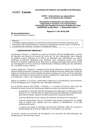Proposition d'attribution de subventions à l'association Tremplin J et à l'Association D’Entraide des Pupilles et Anciens Pupilles de l’Etat (ADEPAPE) du Bas-Rhin - « Passerelle d’Azur »