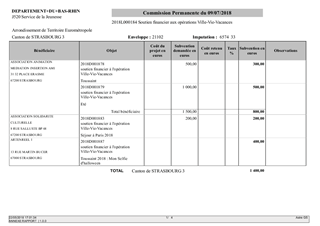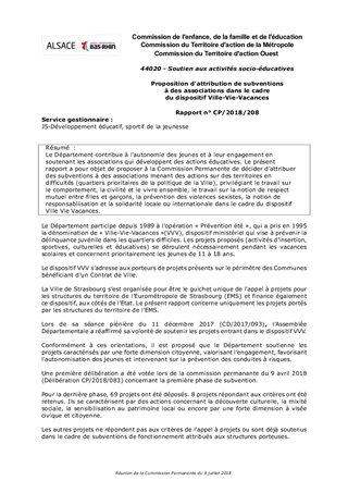 Le Département contribue à l'autonomie des jeunes et à leur engagement en soutenant les associations qui développent des actions éducatives. Le présent rapport a pour objet de proposer à la Commission Permanente de décider d'attribuer des subventions à des associations menant des actions sur des territoires en difficultés (quartiers prioritaires de la politique de la Ville), privilégiant le travail sur le comportement, la civilité et le vivre ensemble, le travail sur la notion de respect mutuel entre filles et garçons, la prévention des violences sexistes, la notion de responsabilisation et la solidarité locale ou internationale dans le cadre du dispositif Ville Vie Vacances.