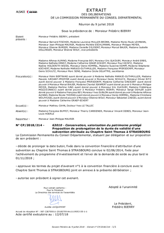 Proposition de prolongation de la durée de validité d'une subvention attribuée au Chapitre Saint Thomas à STRASBOURG