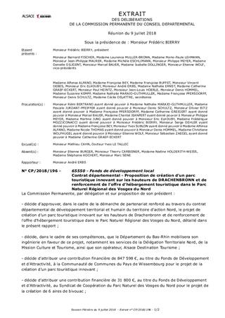 Contrat départemental - Proposition de création d’un parc touristique innovant sur les hauteurs de DRACHENBRONN et de renforcement de l’offre d’hébergement touristique dans le Parc Naturel Régional des Vosges du Nord