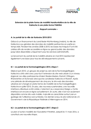 Proposition de soutien à l’extension de la plate-forme de mobilité de la Ville de Karlsruhe en une plate-forme de mobilité transfrontalière sur tout l’espace PAMINA