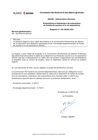 Le présent rapport a pour objet de proposer à la Commission Permanente de décider de la répartition des dotations cantonales et de l'enveloppe départementale du Fonds de soutien à la vie associative (FSVA).