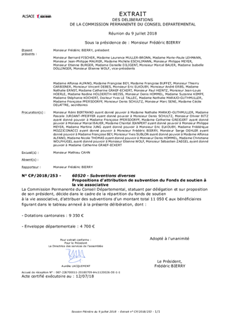 Propositions d'attribution de subvention du Fonds de soutien à la vie associative
