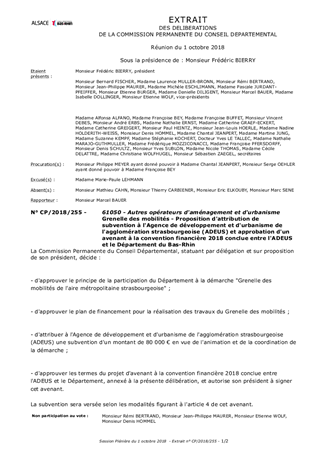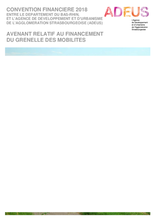 Grenelle des mobilités - Proposition d'attribution de subvention à l'Agence de développement et d'urbanisme de l'agglomération strasbourgeoise (ADEUS) et approbation d'un avenant à la convention financière 2018 conclue entre l'ADEUS et le Département du Bas-Rhin