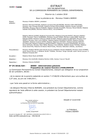 Le présent rapport a pour objet de proposer à la Commission Permanente la cession d’une parcelle de terrain située à MARLENHEIM, au profit de propriétaires riverains.