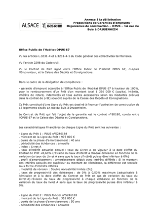 Propositions de Garanties d’emprunts-Organismes de construction - OPUS 67 - 1 rue du Buis à DRUSENHEIM