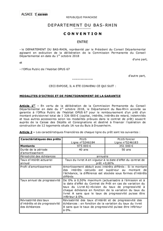 Le présent rapport a pour objet de proposer à la Commission Permanente de décider d’accorder une garantie d’emprunt pour un prêt souscrit par l’Office Public de l’Habitat OPUS 67 pour l’opération de construction de logements situés 1 rue du Buis à Drusenheim.