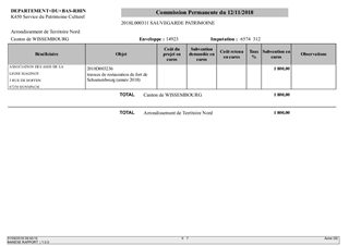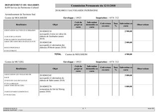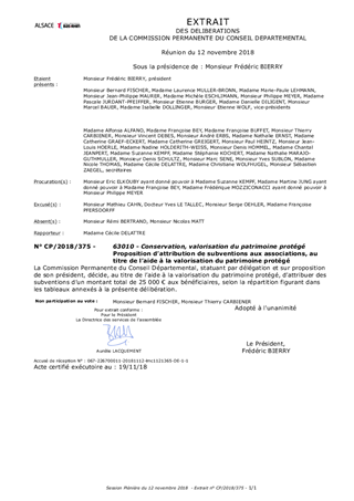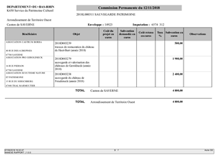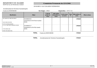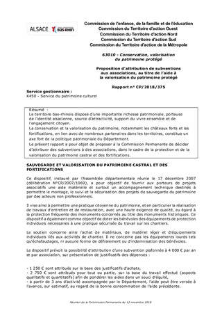 Le territoire bas-rhinois dispose d'une importante richesse patrimoniale, porteuse de l'identité alsacienne, source d'attractivité, support du vivre ensemble et de l’engagement citoyen. La conservation et la valorisation du patrimoine, notamment les châteaux forts et les fortifications, en lien avec de nombreux partenaires dans les territoires, constitue un axe fort de la politique patrimoniale du Département. Le présent rapport a pour objet de proposer à la Commission Permanente de décider d’attribuer des subventions à des associations, dans le cadre de la protection et de la valorisation du patrimoine castral et des fortifications.
