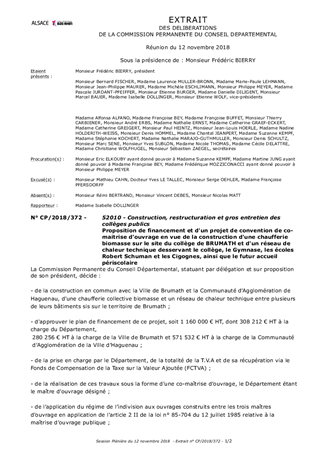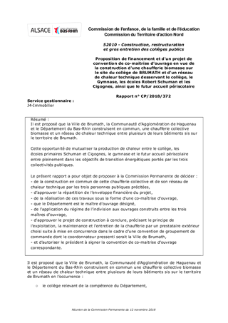 Proposition de financement et d'un projet de convention de co-maitrise d’ouvrage en vue de la construction d'une chaufferie biomasse sur le site du collège de BRUMATH et d’un réseau de chaleur technique desservant le collège, le Gymnase, les écoles Robert Schuman et les Cigognes, ainsi que le futur accueil périscolaire