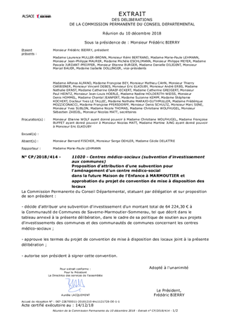Proposition d'attribution d'une subvention pour l'aménagement d'un centre médico-social dans la future Maison de l'Enfance à MARMOUTIER et approbation du projet de convention de mise à disposition des locaux