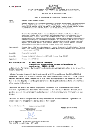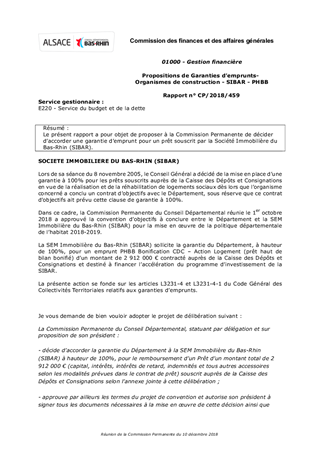 Le présent rapport a pour objet de proposer à la Commission Permanente de décider d’accorder une garantie d’emprunt pour un prêt souscrit par la Société Immobilière du Bas-Rhin (SIBAR).