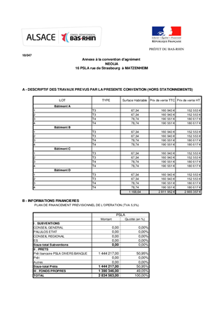 Le présent rapport a pour objet de proposer à la Commission Permanente de décider d’attribuer un agrément à la société NEOLIA pour un prêt social de location-accession (PSLA) concernant la construction de 16 logements individuels situés rue de Strasbourg à Matzenheim. Il a également pour objet à la Commission Permanente de proposer de décider d’attribuer une subvention départementale suite à la demande d’un ménage au titre de l’accession sociale à la propriété dans le cadre du dispositif de prêt social de location accession (PSLA) pour une opération réalisée par Habitat de l’Ill à Obernai.