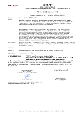 Proposition d’avis du Département sur le projet de Plan Local d’Urbanisme arrêté de la Commune de WEITBRUCH
