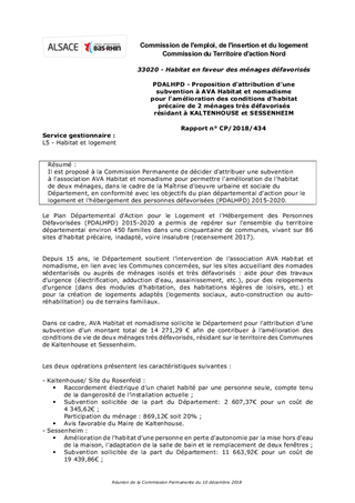 PDALHPD - Proposition d'attribution d'une subvention à AVA Habitat et nomadisme pour l'amélioration des conditions d'habitat précaire de 2 ménages très défavorisés résidant à KALTENHOUSE et SESSENHEIM
