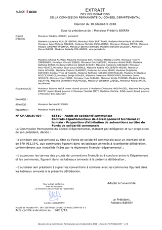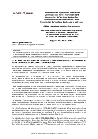 Le présent rapport a pour objet de proposer à la Commission Permanente de décider d’attribuer des aides départementales aux Communes dans le cadre des contrats départementaux, au titre du Fonds de solidarité communale.