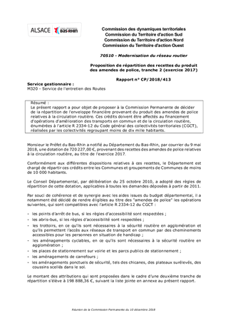Proposition de répartition des recettes du produit des amendes de police, tranche 2 (exercice 2017)