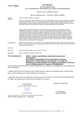 Proposition d'attribution d'une subvention au Centre Ressources "Petite Enfance et Handicap" de l'Aapei de Strasbourg et d'approbation du projet de convention à conclure entre le Département et l'Aapei de STRASBOURG