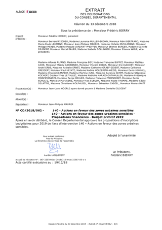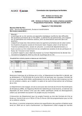 140 - Actions en faveur des zones urbaines sensibles - Propositions financières - Budget primitif 2019