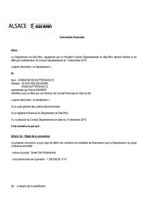 Contrats départementaux - Proposition d'attribution de subvention et d'approbation du projet de convention partenariale et financière concernant le Smart Dorf à conclure avec la Commune de MUTTERSHOLTZ