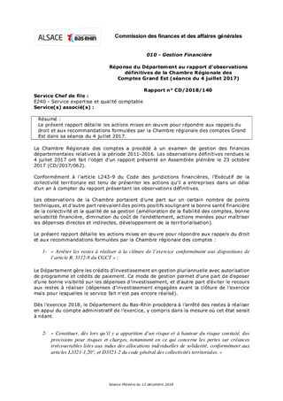 Réponse du Département au rapport d'observations définitives de la Chambre Régionale des Comptes Grand Est (séance du 4 juillet 2017)