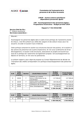 230 - Accompagnement des personnes âgées - Propositions financières - Budget primitif 2019